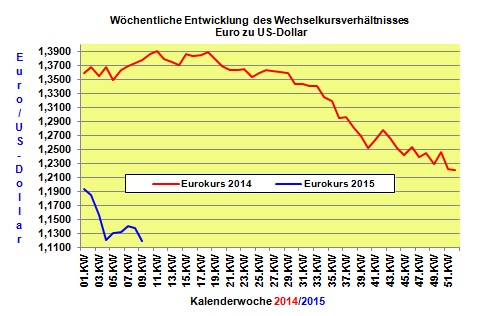 In der 9.KW 2014 lag der Euro bei 1,3773. Im jahresvergleich hat der euro rund 19% an Wert gegenüber dem US-dollar verloren.