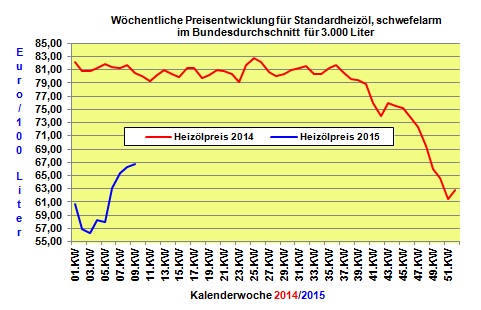 Einschätzung der Heizölpreise-Entwicklung für die 10.KW 2015:
